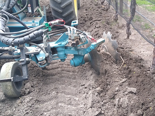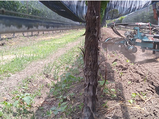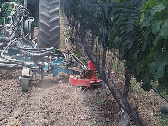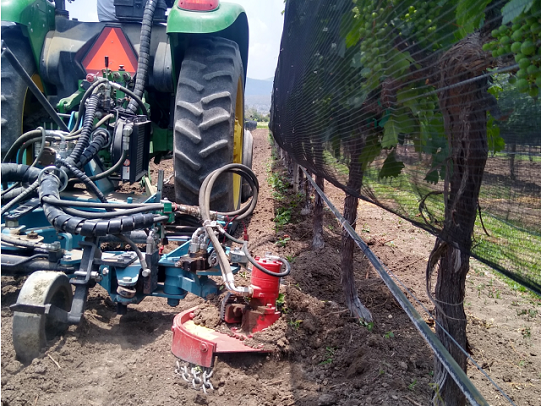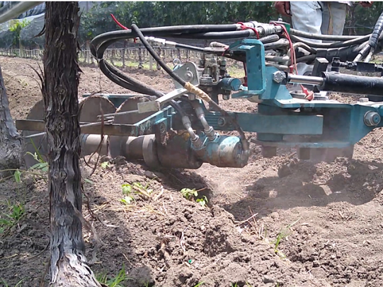 Equipo diseñado para el control mecánico de malezas que usualmente crecen bajo la vid, huertos, olivos y en general en todos los plantíos cultivados en filas.