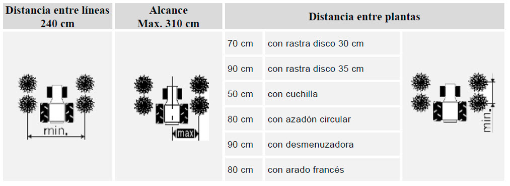 3. Ajuste hidráulico del implemento para el trabajo entre las filas